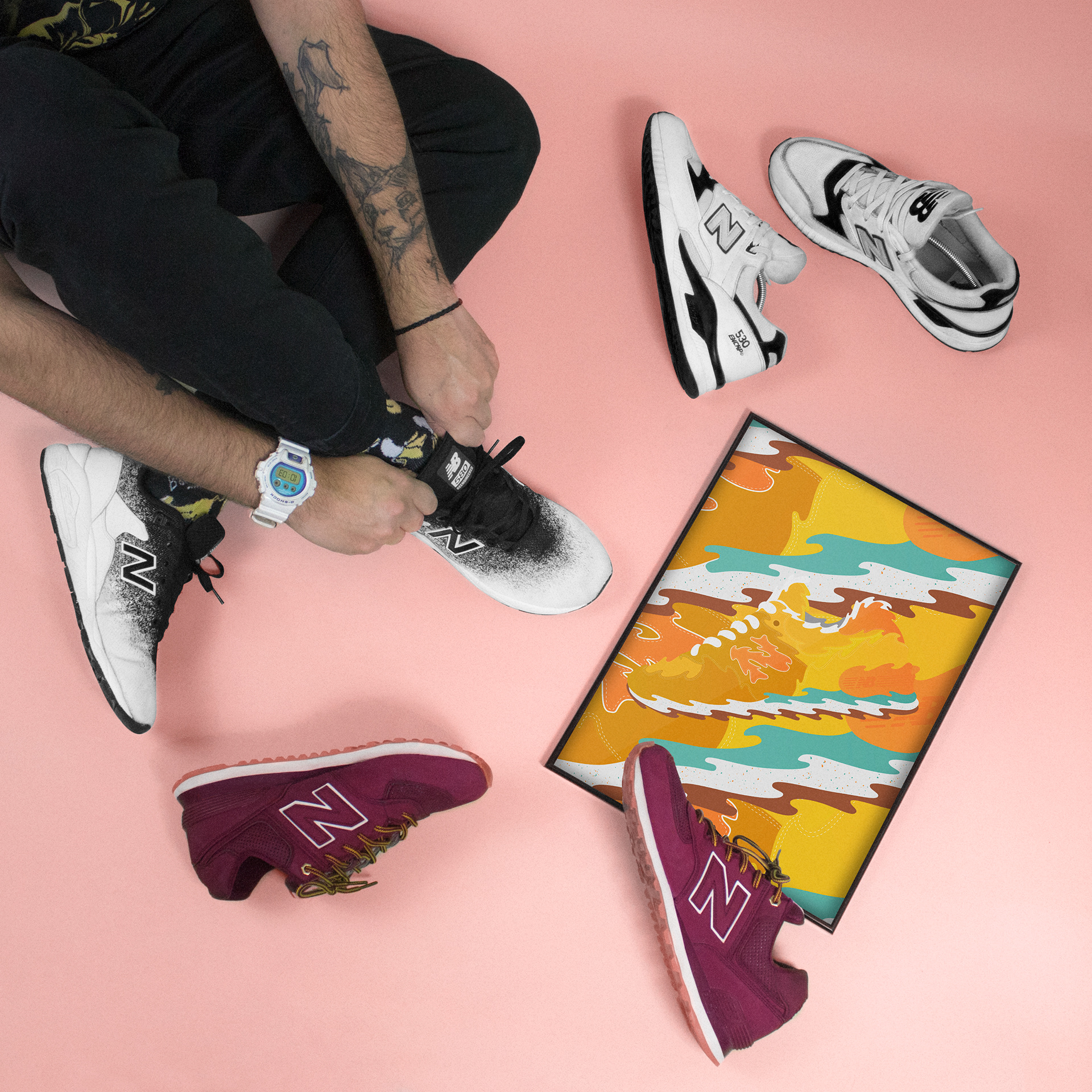 Sesiones de fotos sneakers junto a los cuadros que realizamos en KMK.