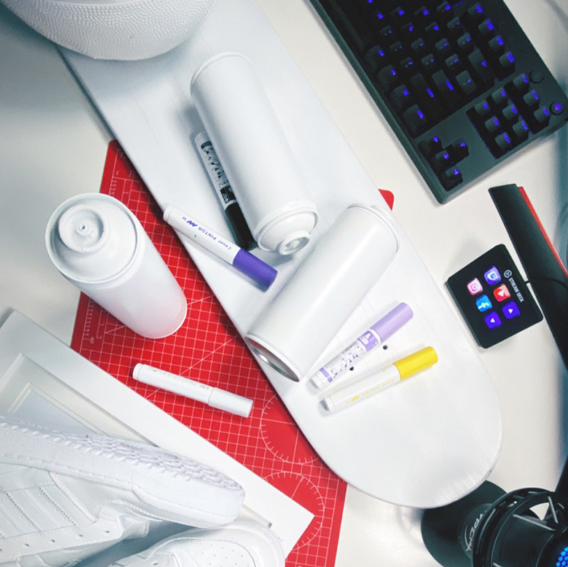Pusimos a prueba los marcadores PILOT PINTOR en todo tipo de superficie. Para eso pinte 5 elementos diferentes para demostrar la efectividad de los marcadores en madera, vidrio, lata, cuera, plástico, en productos como zapatillas, pelotas, cuadros, etc.