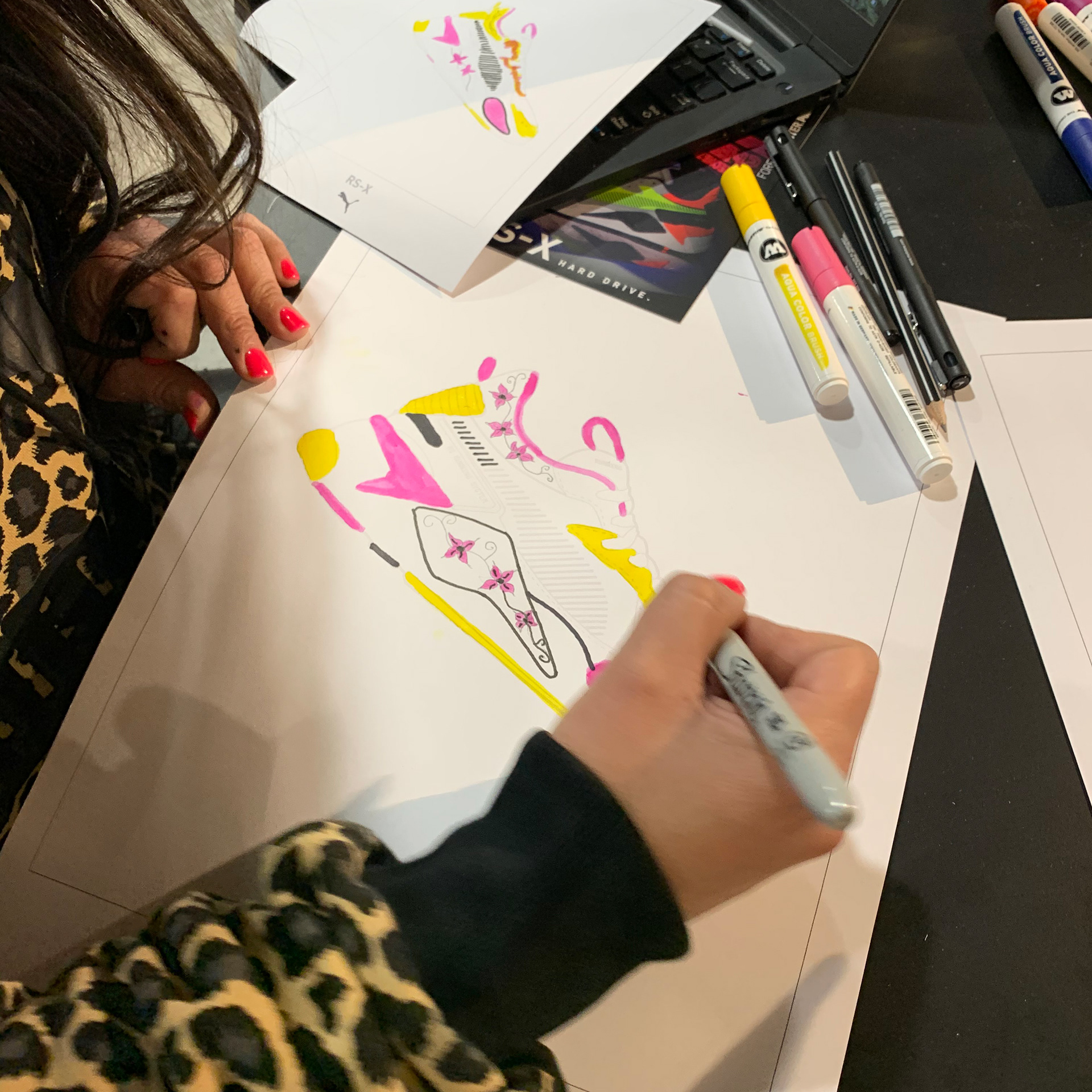 Realizamos un taller de diseño e ilustración en las oficinas de Puma inspirados en el "Puma by Creators". El workshop se realizó con marcadores Molotow en unas plantillas realizadas por Kissmykicks.