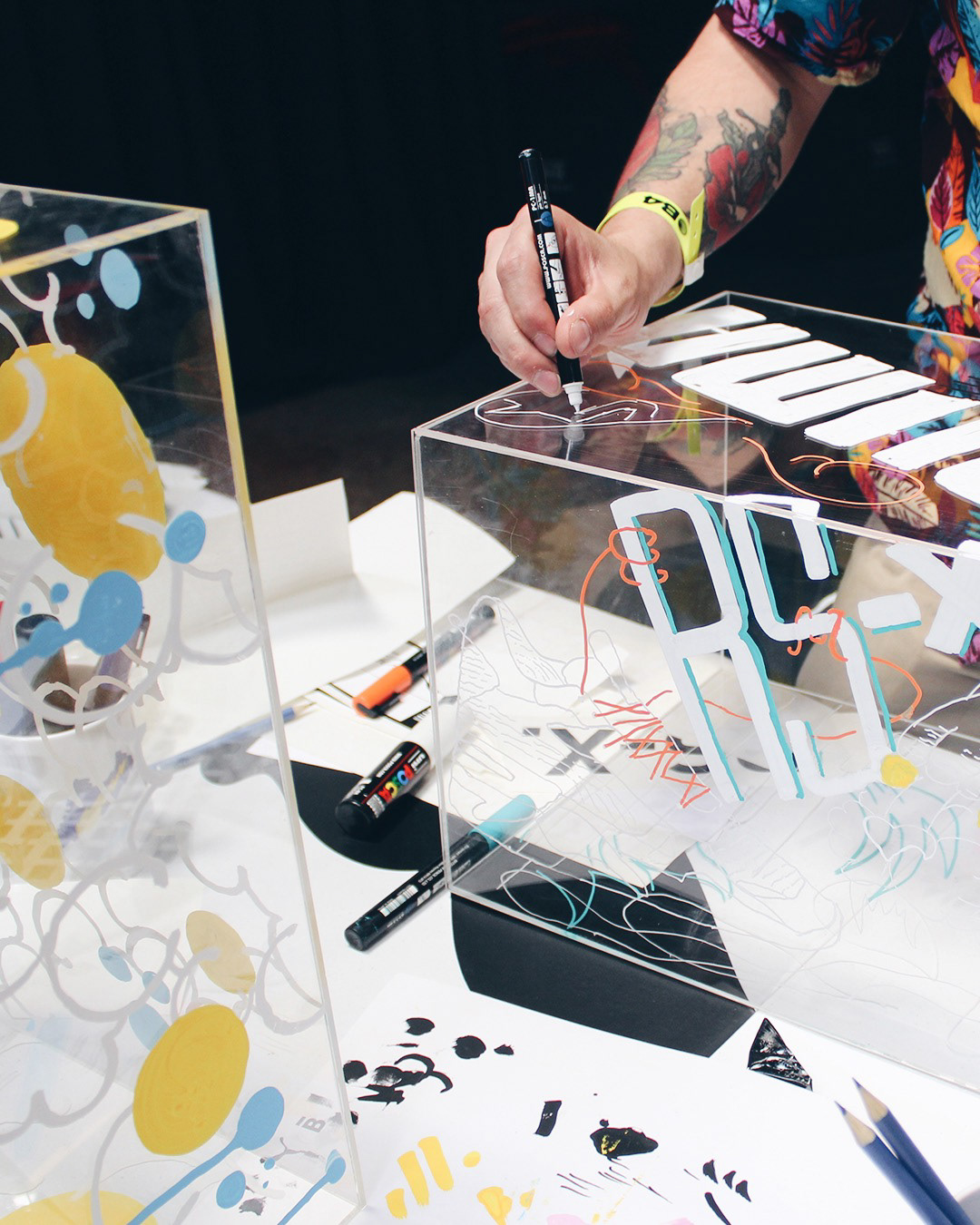 Para la celebración de los 4 años de BOLD fuimos invitados por PUMA a realizar un taller de ilustración en cajas acrílicas que contendrían a las nueva Puma RS-X. El taller contó con 4 invitados que fueron los encargados de diseñar e ilustrar estas cajas.