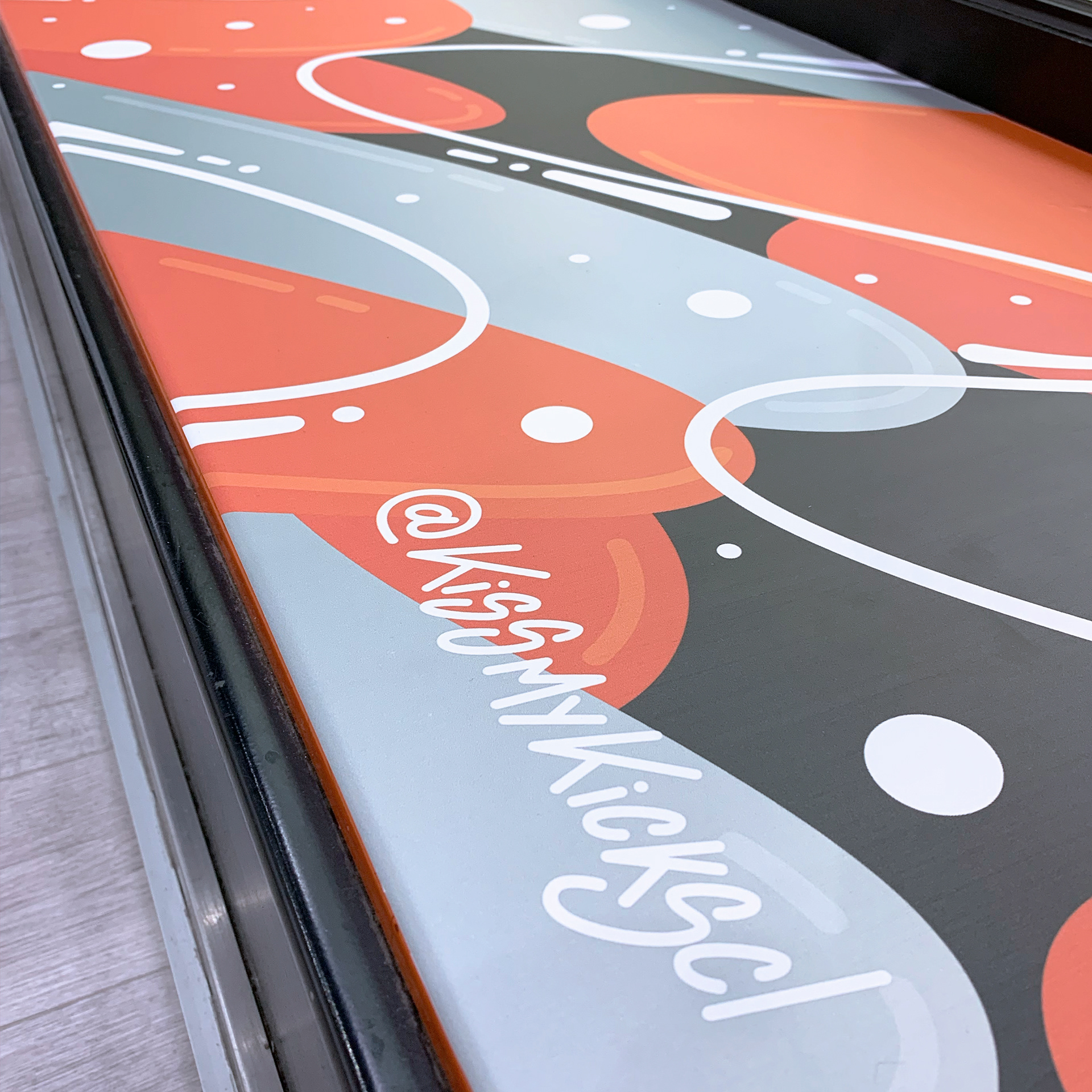 Diseño desarrollado para tienda REAL KICKS, donde tuve la libertad de mostrar mi estilo gráfico junto a los colores corporativos de la marca.